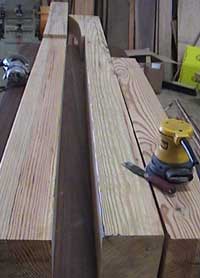 ![]() Heart Pine Beams after being milled from 11X17 inch beam into doorway beams. |